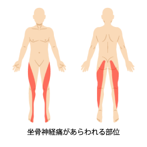 坐骨神経痛の原因は、名前の通り坐骨神経が何らかの原因で圧迫されることにより痛みや痺れが生じます。